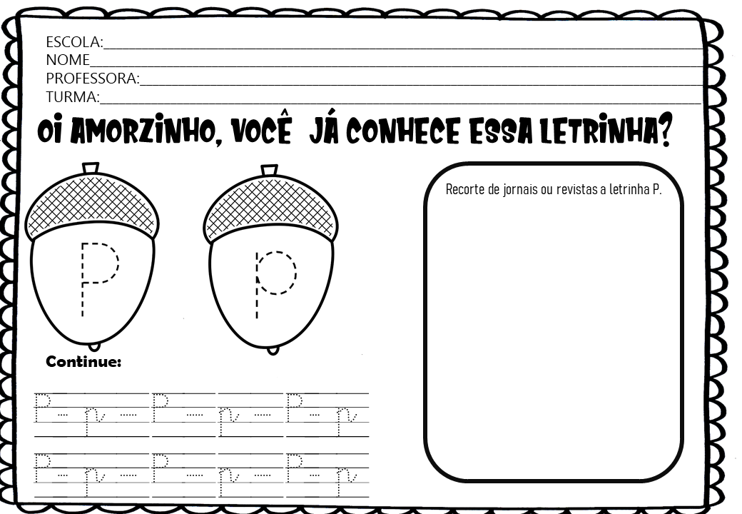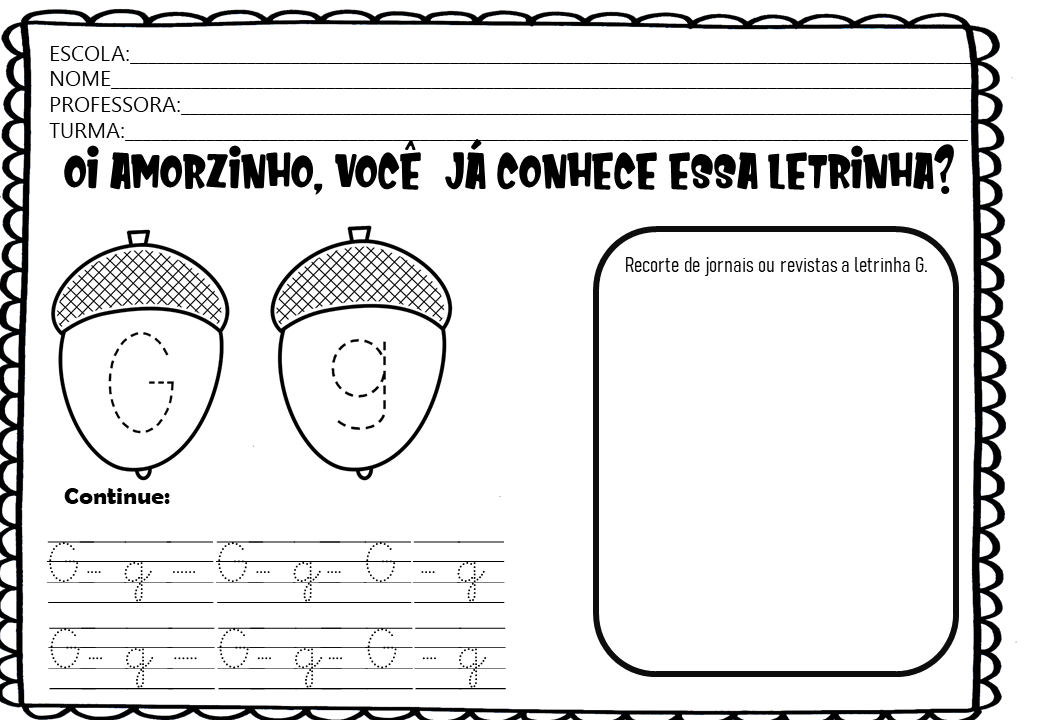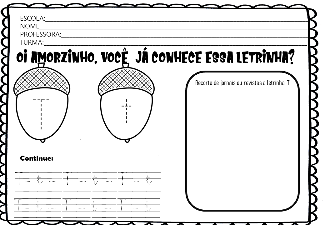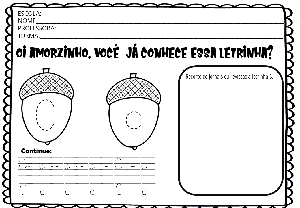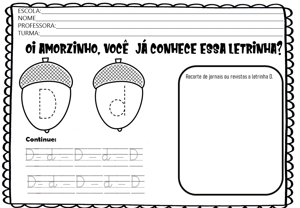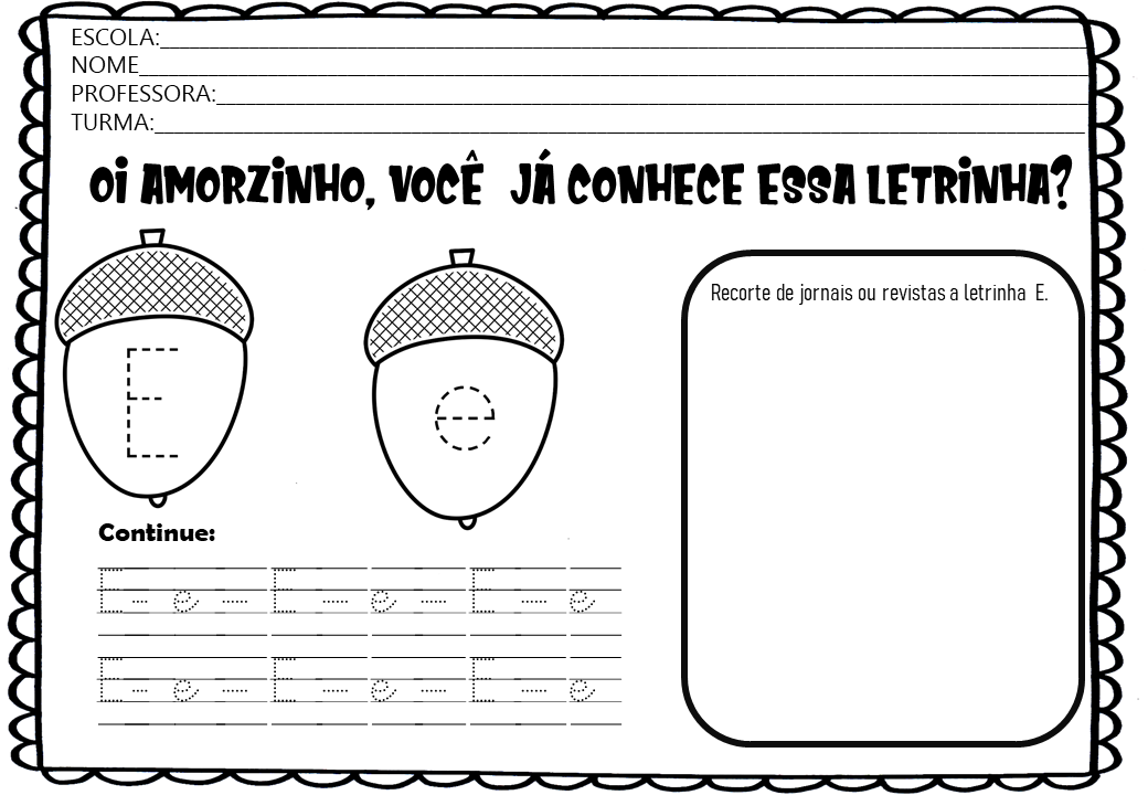 • Pedir que a criança localize nas atividades disponibilizadas, qual letrinha está estudando.