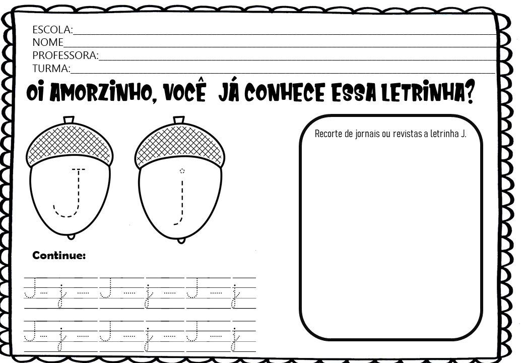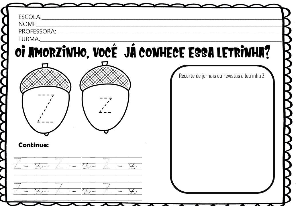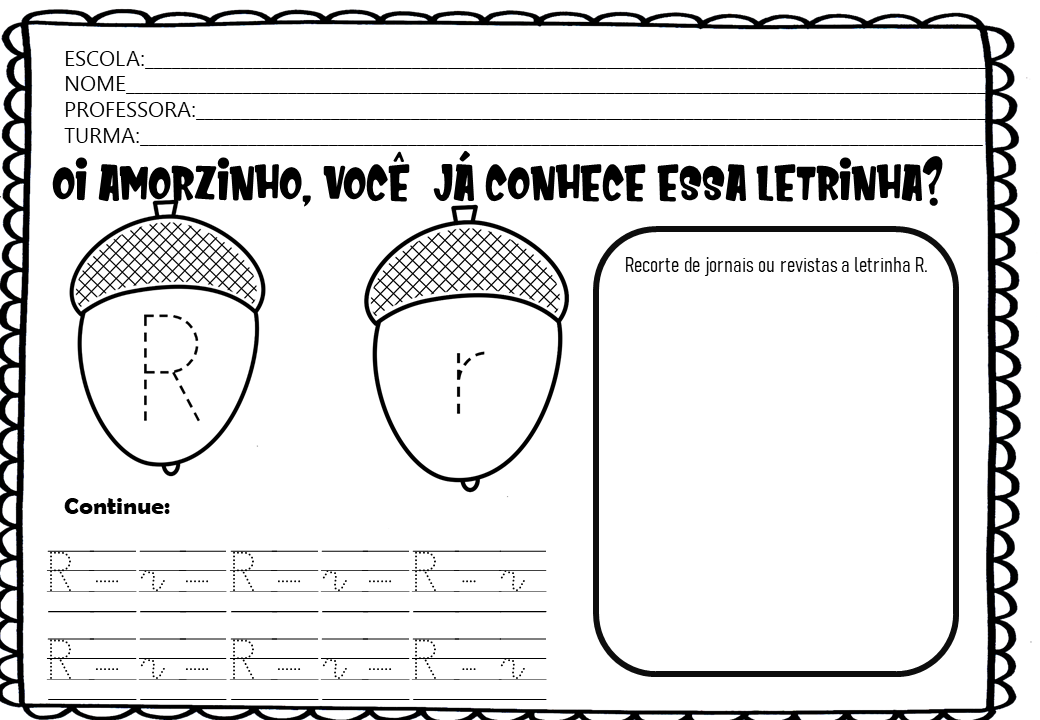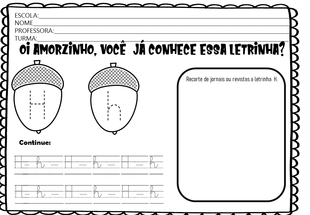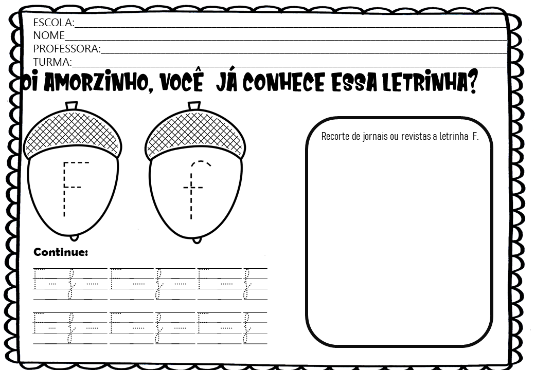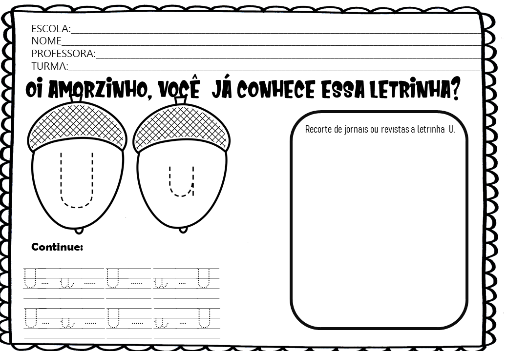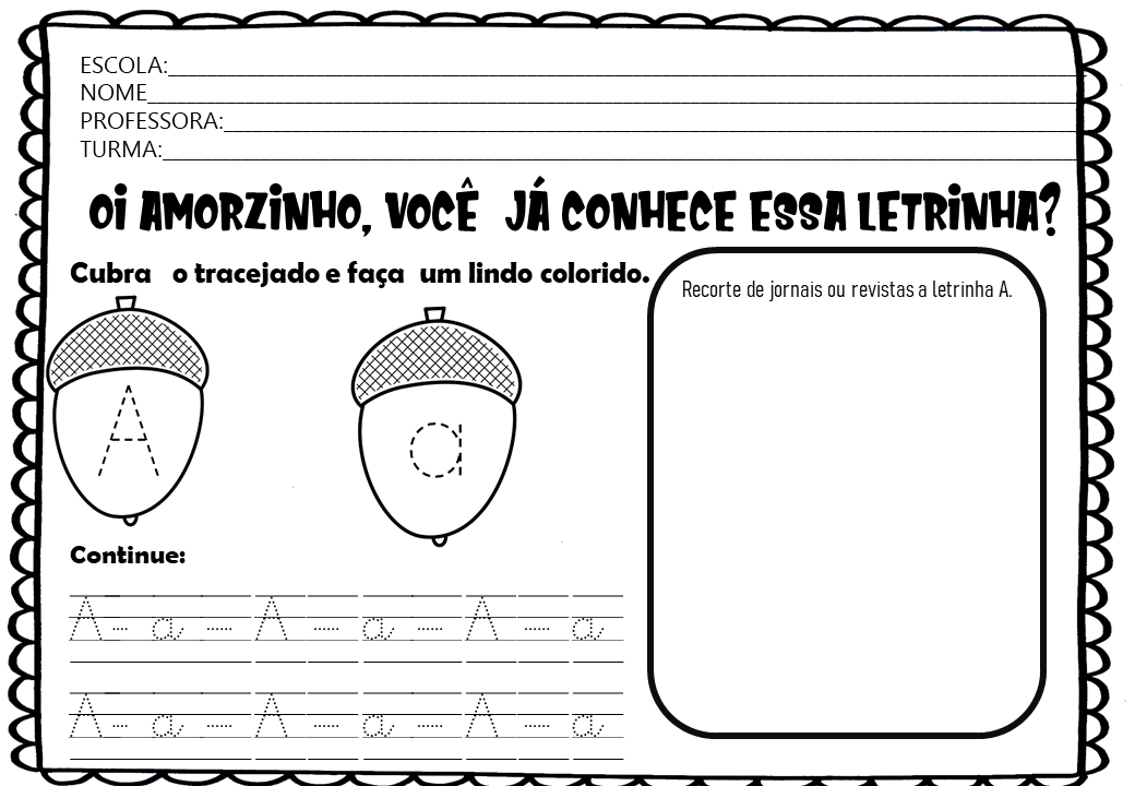 • Pedir que a criança localize nas atividades disponibilizadas, qual letrinha está estudando.